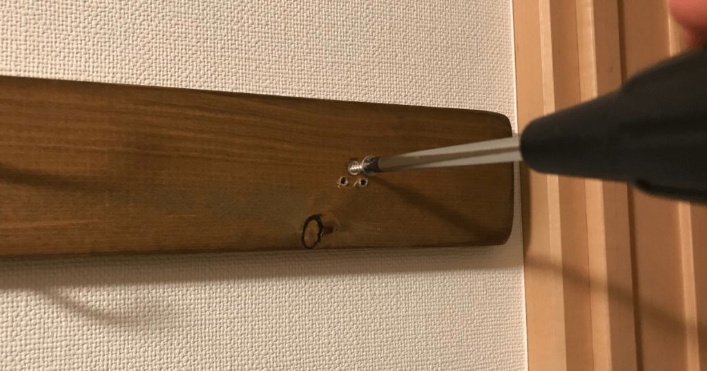 ネジを合わせドライバーで壁に固定する